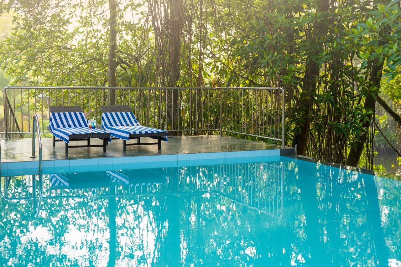 Immerse yourself in our infinity pool, meticulously designed to blend seamlessly with the surrounding verdant retreat.